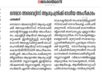 നെന്മാറ അവൈറ്റിസ് ആശുപത്രിക്ക് ഗുണമേന്മക്കുള്ള കേന്ദ്രസർക്കാരിൻറെ എൻ എ ബി എച്ച് അംഗീകാരം